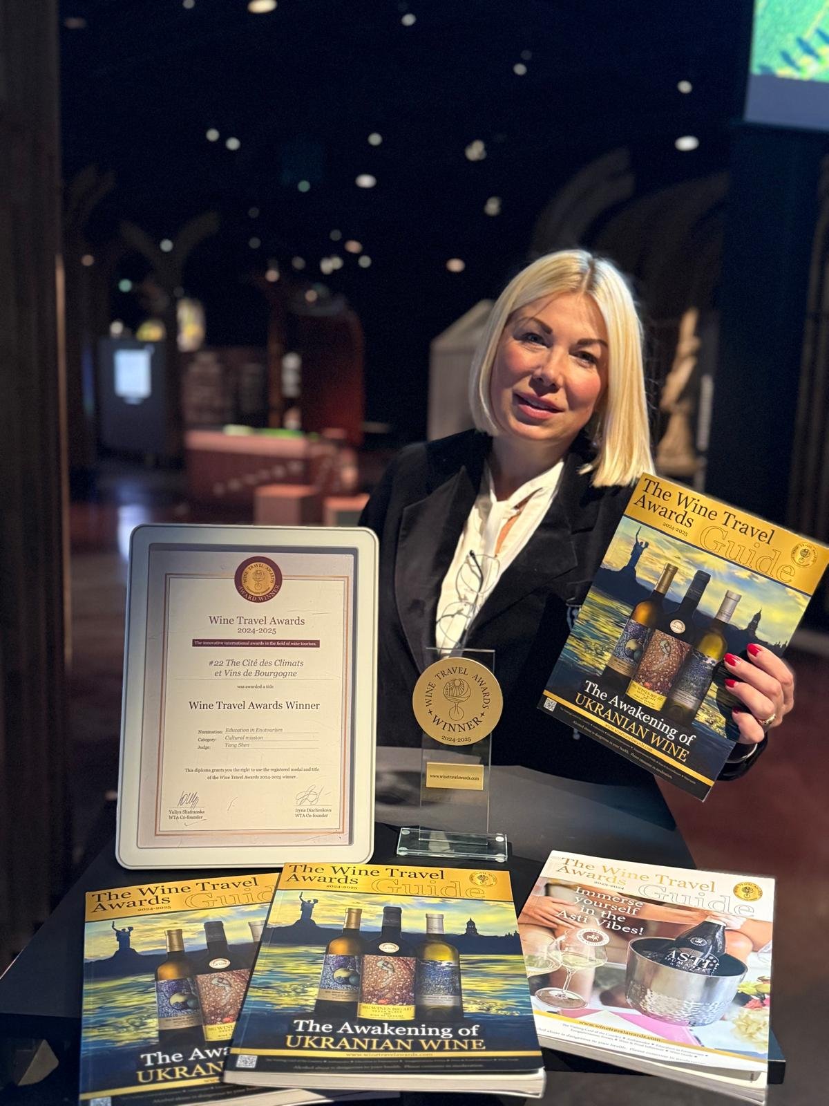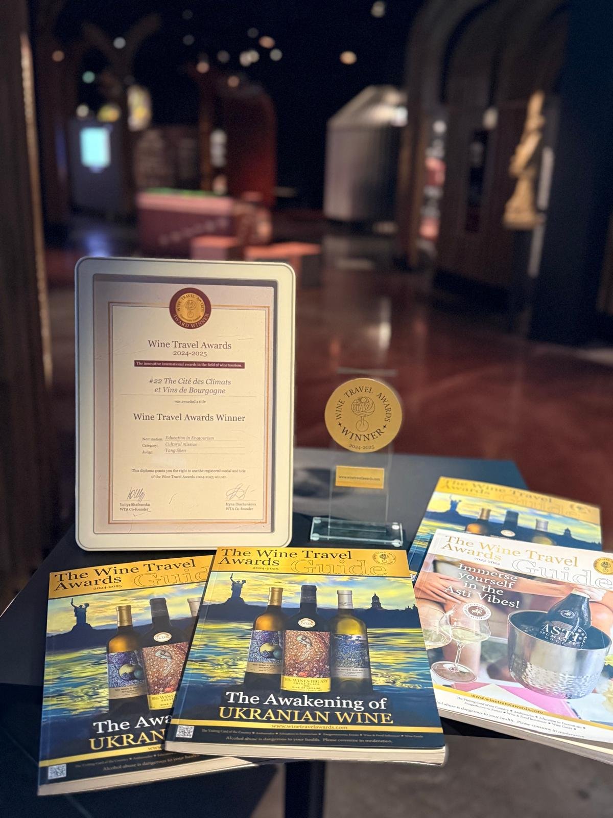 One of the latest confirmations of this was its confident victory in the international Wine Travel Awards 2024–2025. During the patrons’ evening, WTA Ambassador Oleksandra Minenko Decamp presented the main trophy to the institution’s leadership: Benoît de Charette, President of the Cité des Climats et Vins de Bourgogne; Édouard Moghetti, Director of the Cité; and Laurent Delaunay, President of the Comité Interprofessionnel des Vins de Bourgogne (BIVB). The latest edition of the Wine Travel Awards Guide was also handed to Sylvain Naulin, Managing Director and CEO of the Comité Bourgogne.