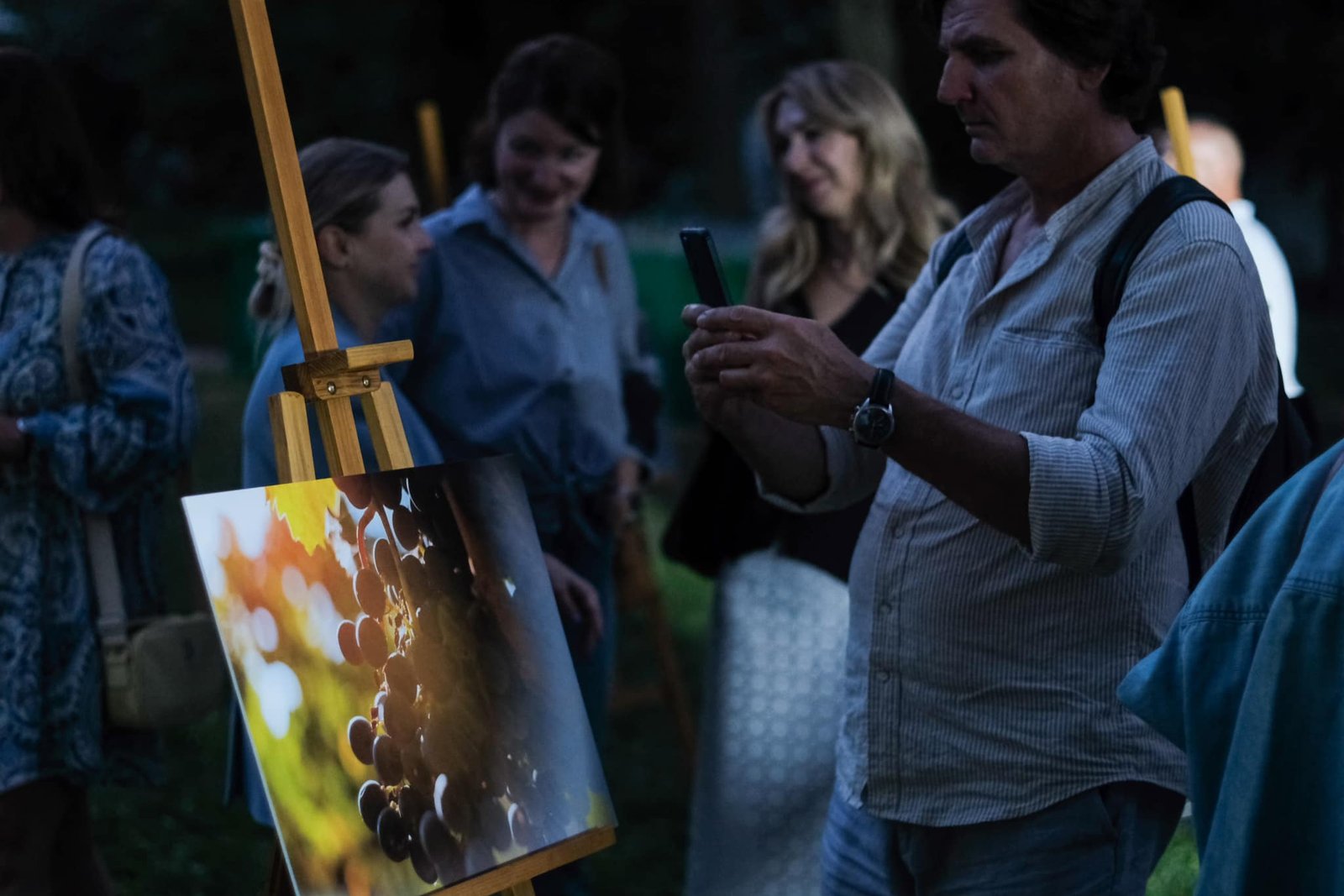 На галявині під величним ясенем були розставлені мольберти з роботами Арсена – фотохудожника, амбасадора українського вина і винороба, капітана ЗСУ і Героя. На них – предмети, краєвиди, люди, лози. Такі, якими їх побачив колись Арсен. Світлини справді випромінювали магічне сяйво – світилися насичені соком бурштинові і пурпурові грона, блікувало осіннє листя під впливом сонного вже сонця…