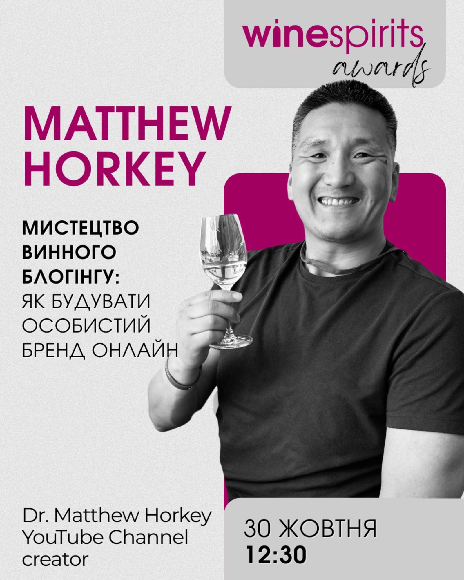 Майстер-клас від доктора Меттью Хоркі (Matthew Horkey) – як стати винною зіркою соцмереж відбудеться 30 жовтня о 12:30.