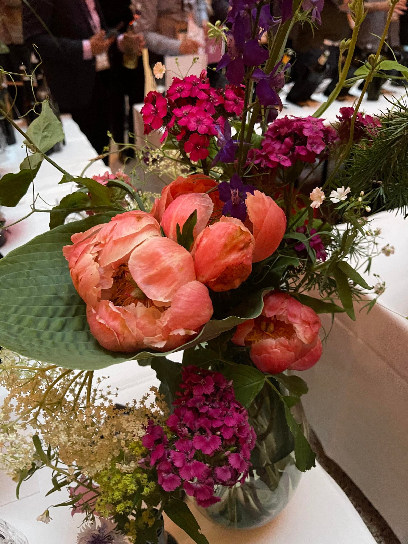 Другим унікальним заходом напередодні виставки став Welcome Event, організований у Музеї прикладного мистецтва. Це було неймовірно гарно! Розкішні зали та коридори музею, столи для дегустацій та столики для гостей були прикрашені квітковими композиціями з півоній, дзвіночків, наперстянок та інших принад літніх європейських садів.